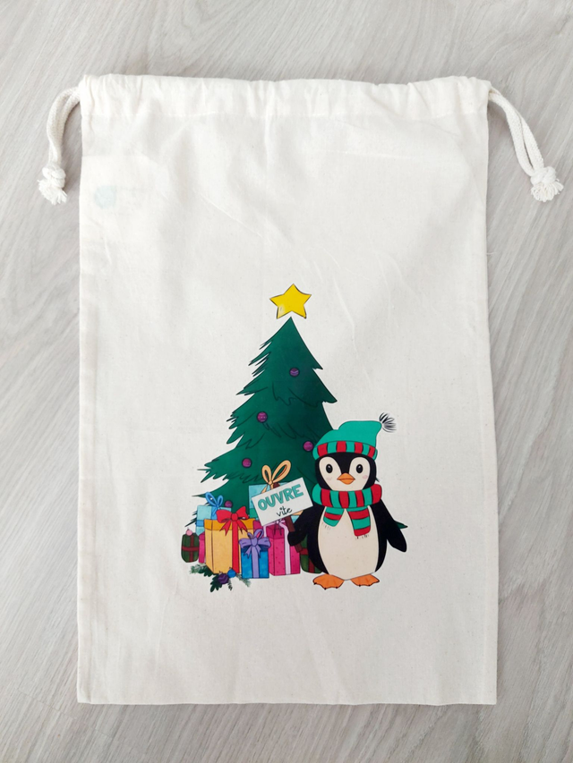 Pochon tissu illustré "Ouvre vite"| Emballage cadeau réutilisable & éco-responsable